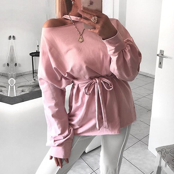 Exude your sexy taste through this t-shirt. Solid color style,the off-shoulder boat neck design will lend you