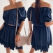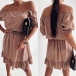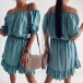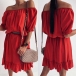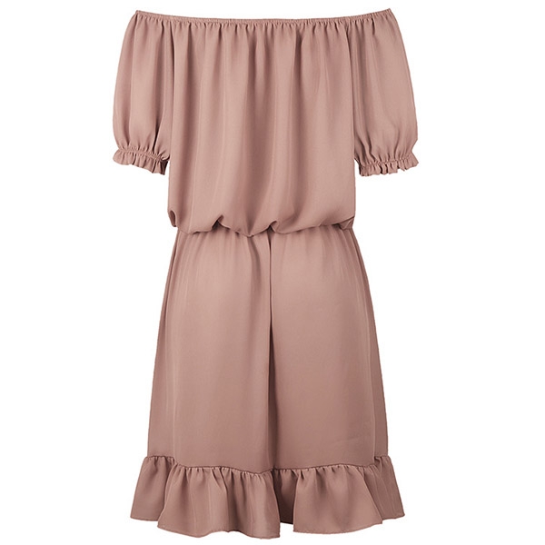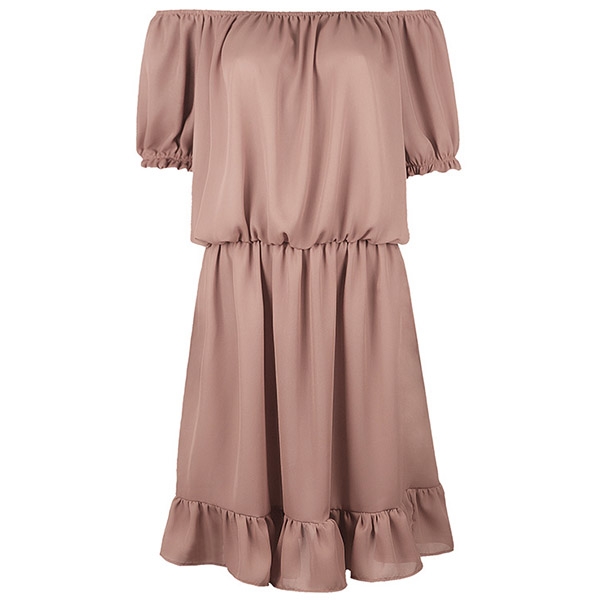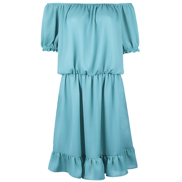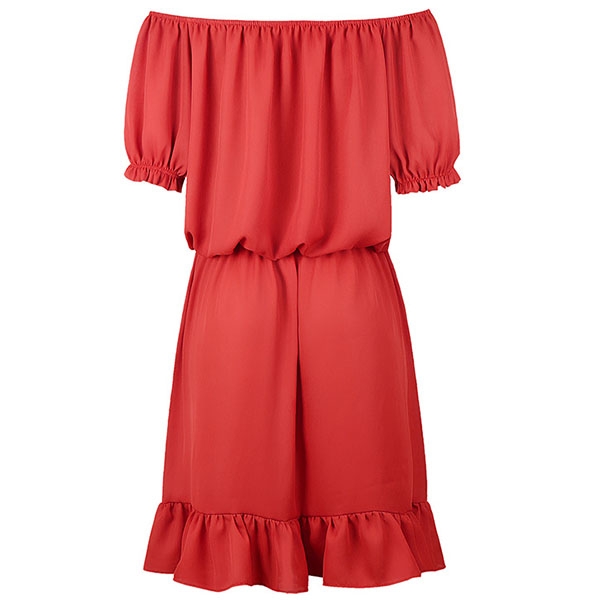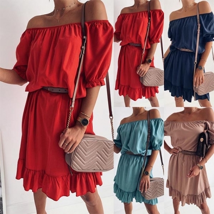 Solid color style,the off-shoulder boat neck and ruffle hem design will exude your charming feminine side.