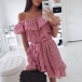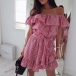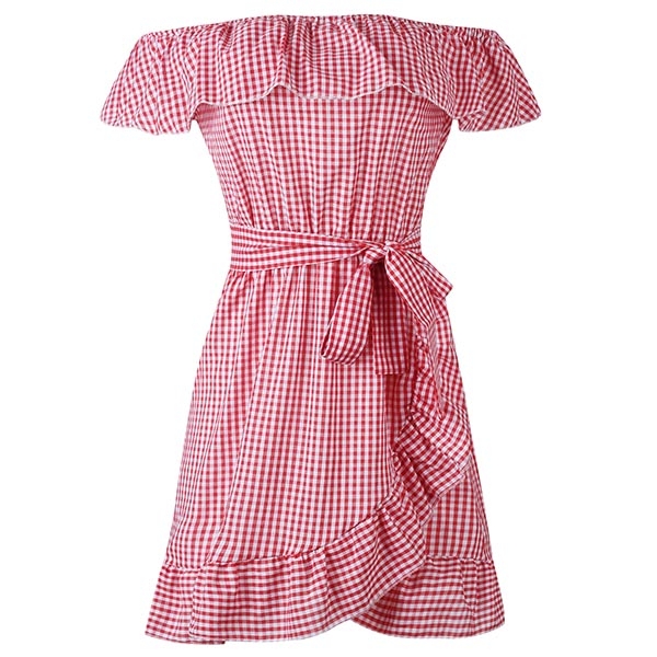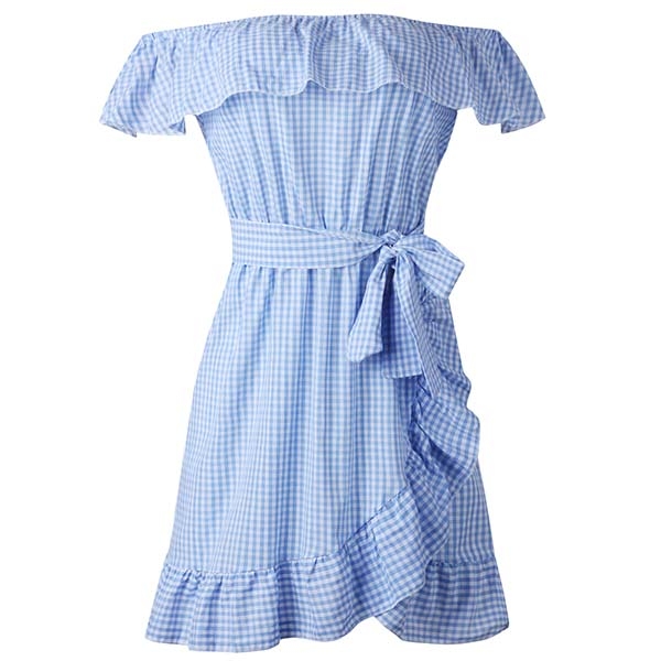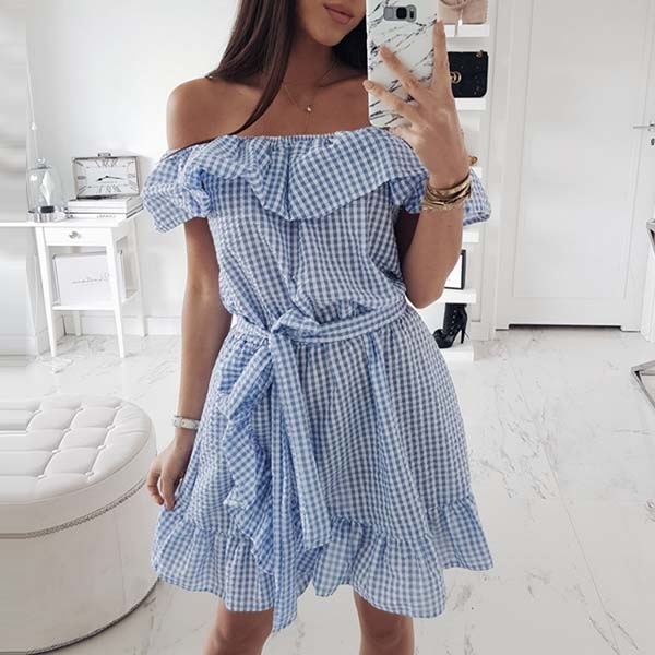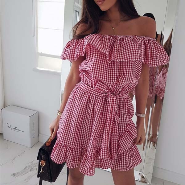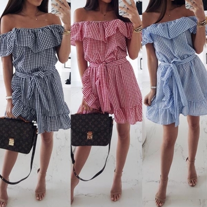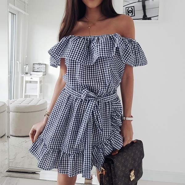 the off-shoulder boat and ruffle design will enhance your feminine appeal. When adding a