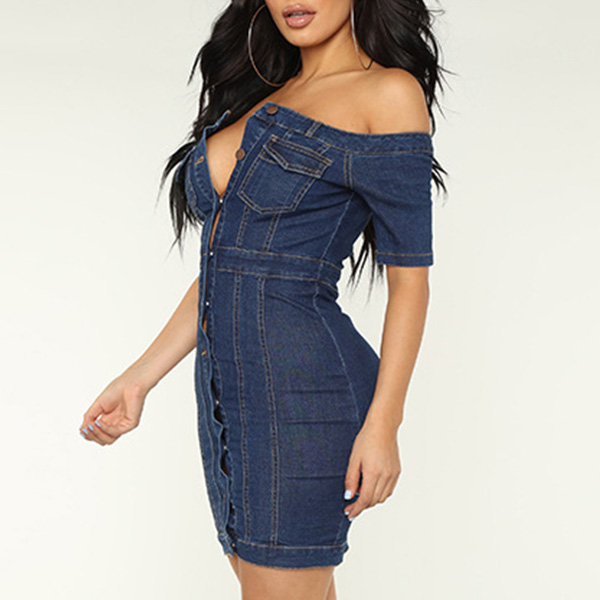 Showcase your seductive curve and alluring feminine appeal through this denim dress. It is finished