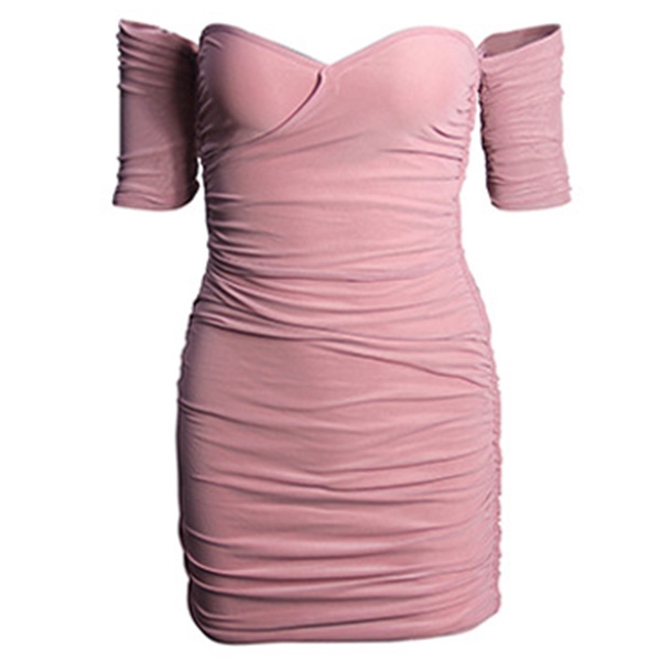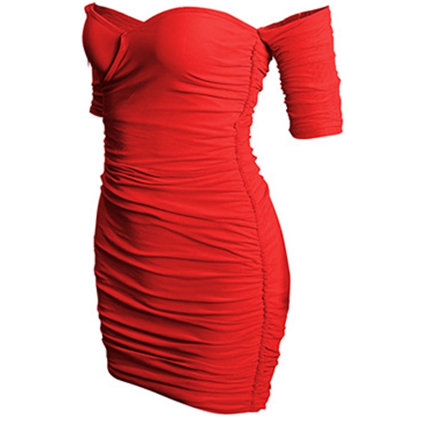 Sexy Off-shoulder Boat Neck Short Sleeve Slim Fit Dress