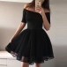 not have one in your wardrobe? Black is a classic yet flattering color,and the off-shoulder boat neck design