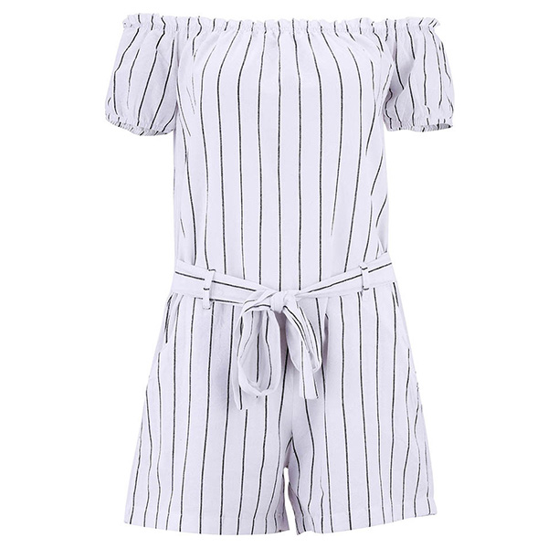 Greet the warmth of a sunny weekend with a delightfully piece such as this romper! Designed with striped element,