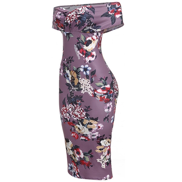 floral print,the off-shoulder boat neck design design will lend you a sexier look,while the fit silhouette