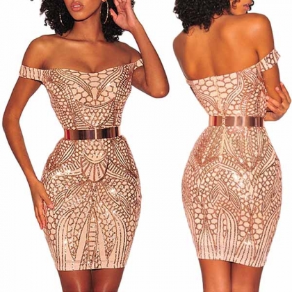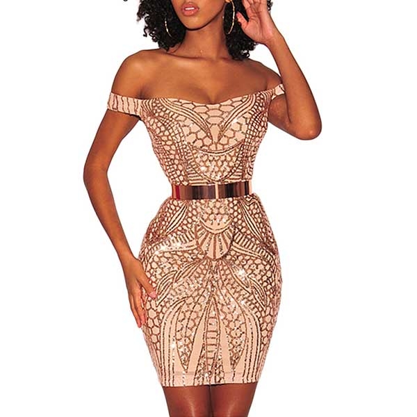The sequin design makes it look so eye-catching and sparkle,while the off-shoulder boat neck and