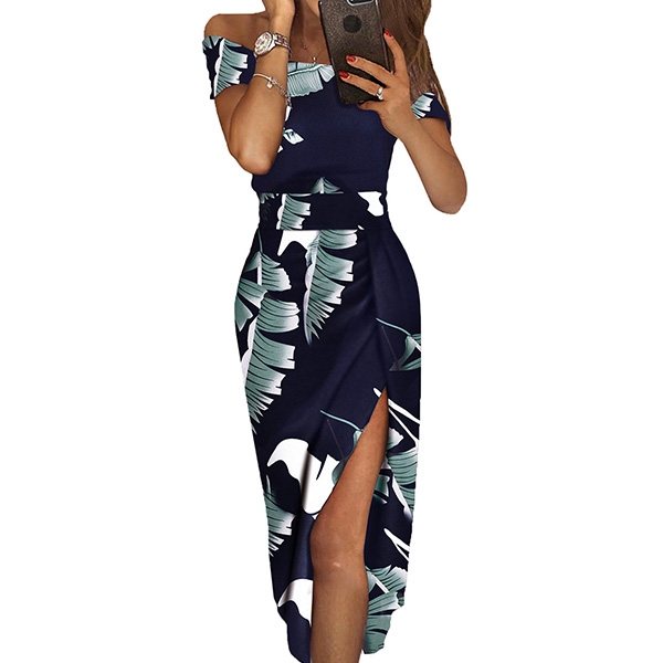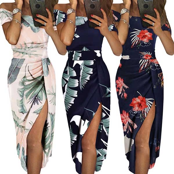 the off-shoulder boat neck and slit hem design make this piece look more attractive and charming.