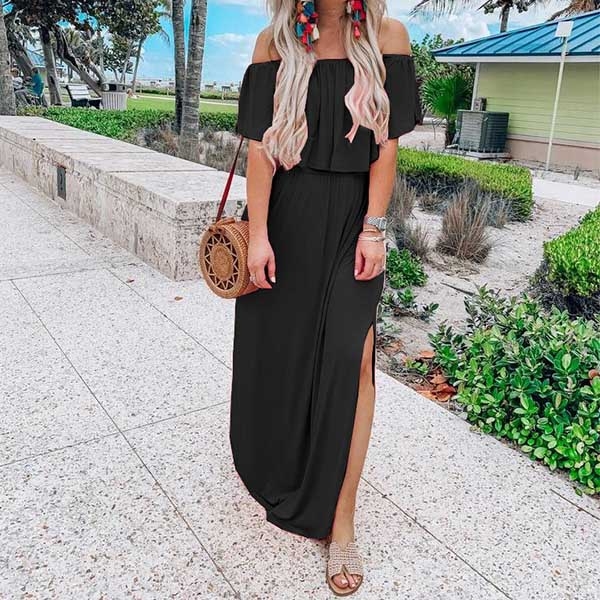 Solid color style,the off-shoulder boat neck and slit hem design make it look so sexy and attractive.