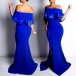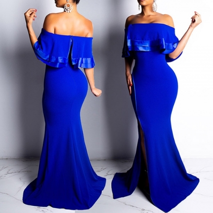 the off-shoulder boat neck and side slit hem design will give you a more alluring look.