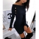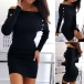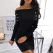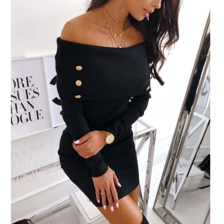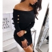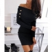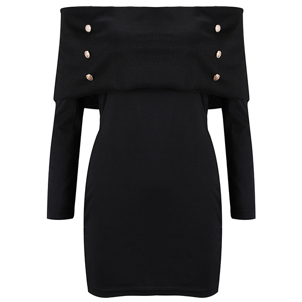 Comes with a classic yet flattering black tone,the off-shoulder boat neck design gives you the chance