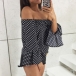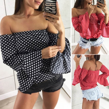 this piece look so attractive,while the off-shoulder boat neck and trumpet sleeve design will give you a