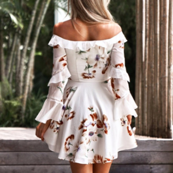 floral print,the off-shoulder boat neck and trumpet sleeve design make this piece look so attractive.