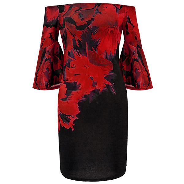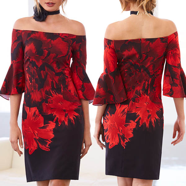 Features chic and eye-catching printed pattern,the off-shoulder boat neck and trumpet sleeve design make this