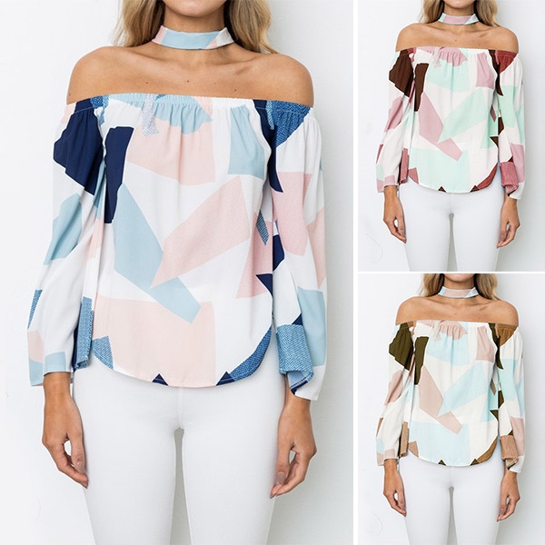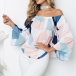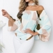 Features chic printed pattern,the boat neck and trumpet sleeve design make this piece look so sexy.