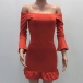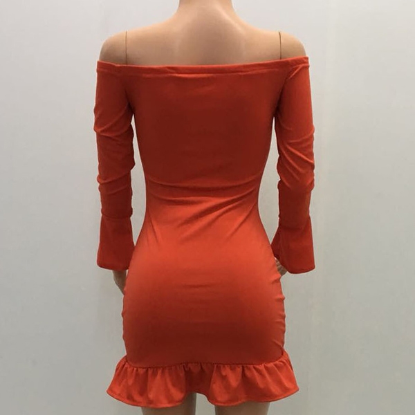 details like off-shoulder boat neck,trumpet sleeve and ruffle hem design make this dress look more