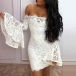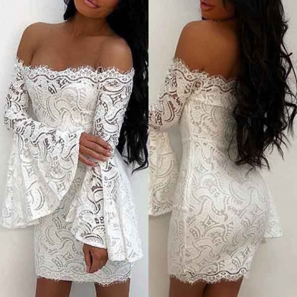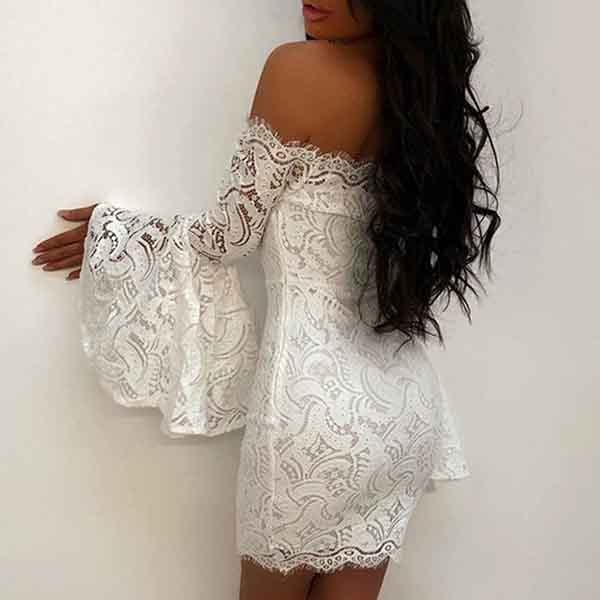 You're sure to gain more eyes when you wear this lace dress. Finished with boat neck,trumpet sleeve and a