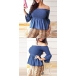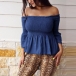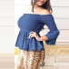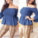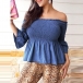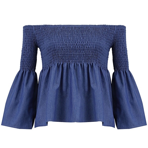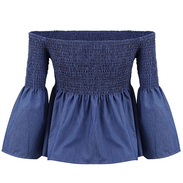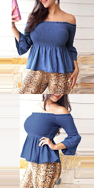 Sexy Off-shoulder Boat Neck Trumpet Sleeve Solid Color Top