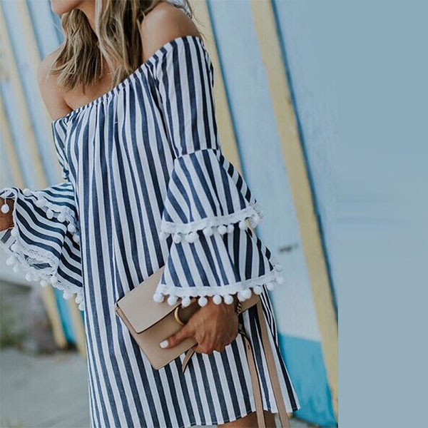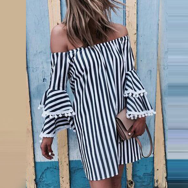 You can look extra beautiful and charming when you wear this dress. Designed with striped element,finished