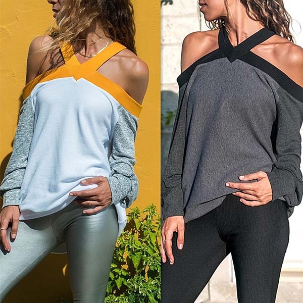 Your wardrobe will feel new and refreshing with this halter knit top. Halter and off-shoulder design can lend