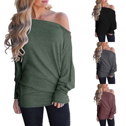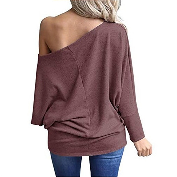 Solid color tone design gives you a simple yet generous vibe,while the off-shoulder and dolman sleeve
