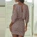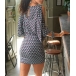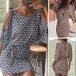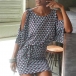 Denna klänning har eleganta tryckta detaljeroch dess off-shoulder design kan ge dig en look som är både flörtig och sexig. Klänningenskortärmade design och runda urringning gör att den är perfekt för varmasommardagar.