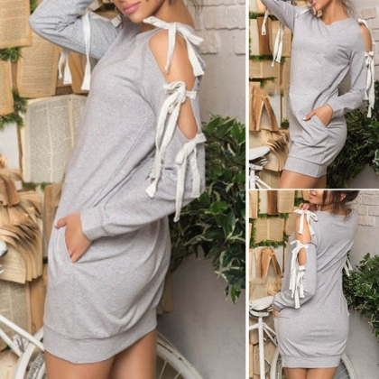You can trust in this sweatshirt dress for a cozy yet sexy style. Boasts a solid color,the off-shoulder and