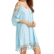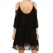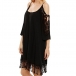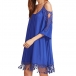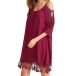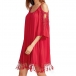 Sling style,its alluring details like off-shoulder,lace spliced details and tassel hem design make this