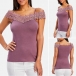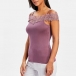 Sexy Off-shoulder Lace Spliced Solid Color Sling T-shirt