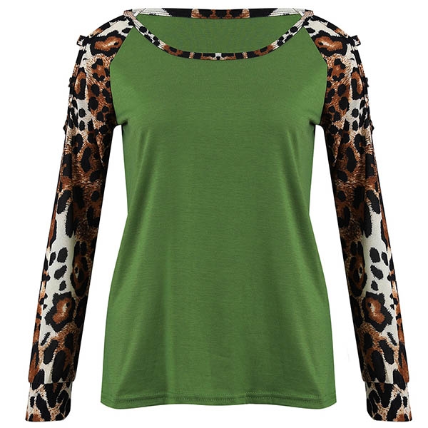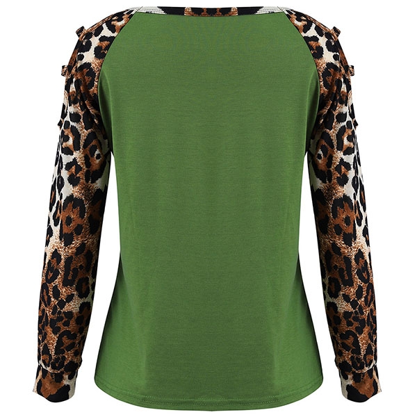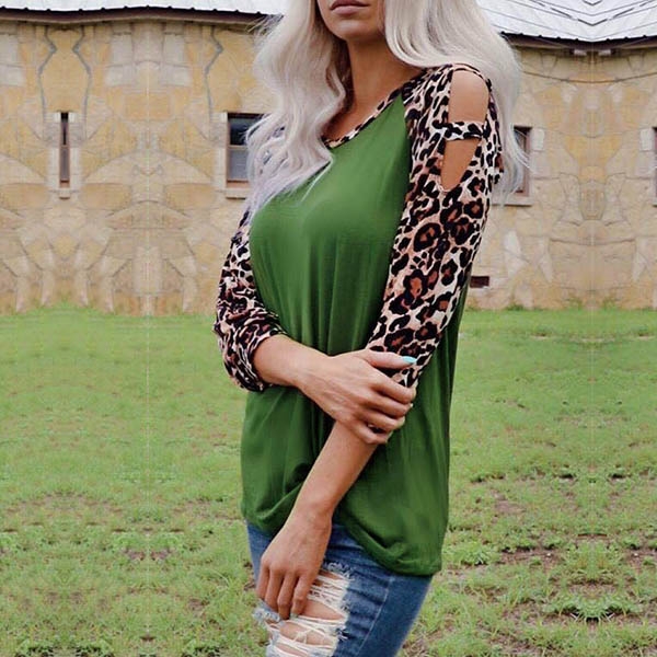 When it comes to a cozy yet sexy style,you can count on this t-shirt. The leopard print details and off-shoulder