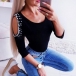 The off-shoulder and beaded details make this piece look so attractive. Finished with long sleeve