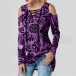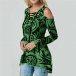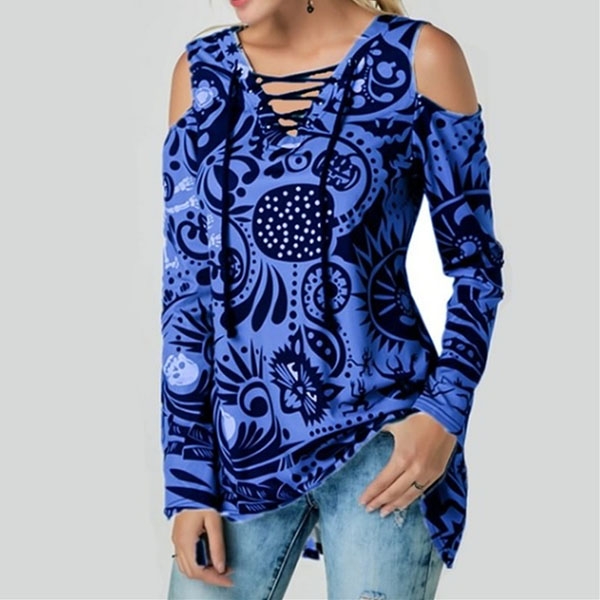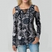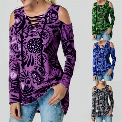 Sexy Off-shoulder Long Sleeve Lace-up V-neck Printed T-shirt