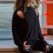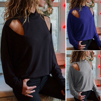 Greet the autumn season with this cozy yet sexy t-shirt! Comes with a solid color,the off-shoulder