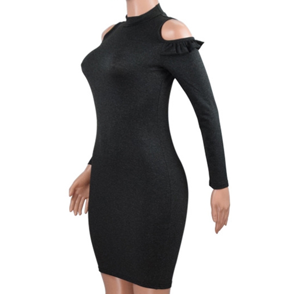 Solid color style,with long sleeve,mock neck and a tight silhouette,this dress knows how to flaunt