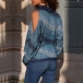This sweatshirt that exudes cozy and sexy flavor is worth to arouse your attention. The striped printed