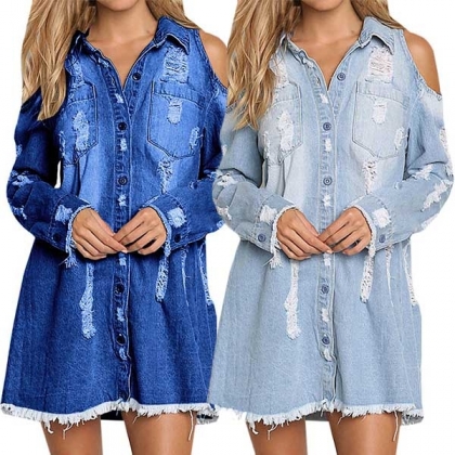 silhouette design can offer you a comfortable day,while the off-shoulder and ripped details will