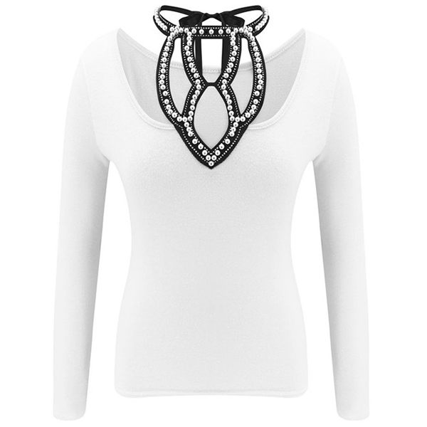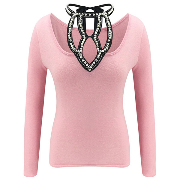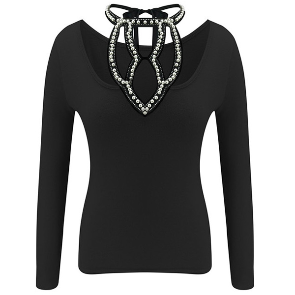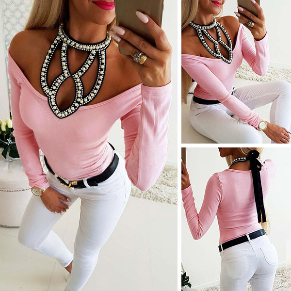with off-shoulder design,this piece can lend you a flirty look. The rhinestone and pearl details