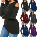 Hey,girls,you can slip into this t-shirt for a cozy yet sexy style. Comes with a solid color,the off-shoulder