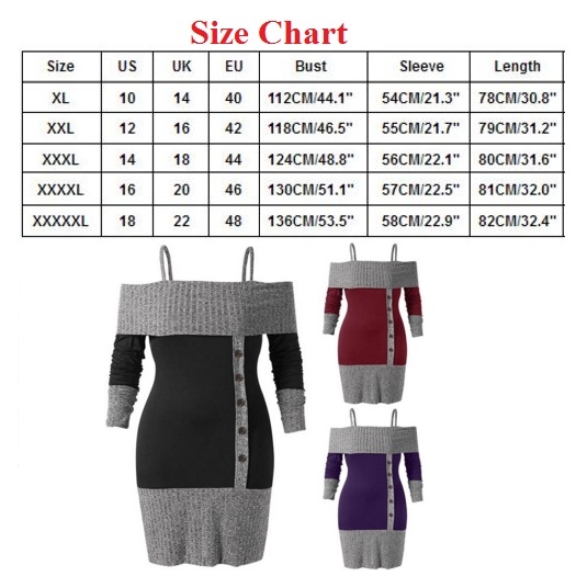 XL : Bust : 112cm(44.09"); Sleeve : 54cm(21.26"); Length : 78cm(30.71");