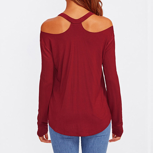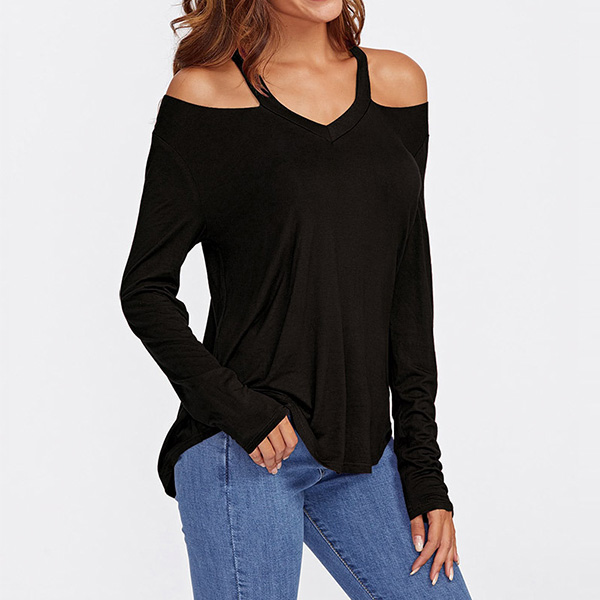 Cozy yet sexy,this is what this t-shirt can offer you! Solid color style,the off-shoulder and unique halter design