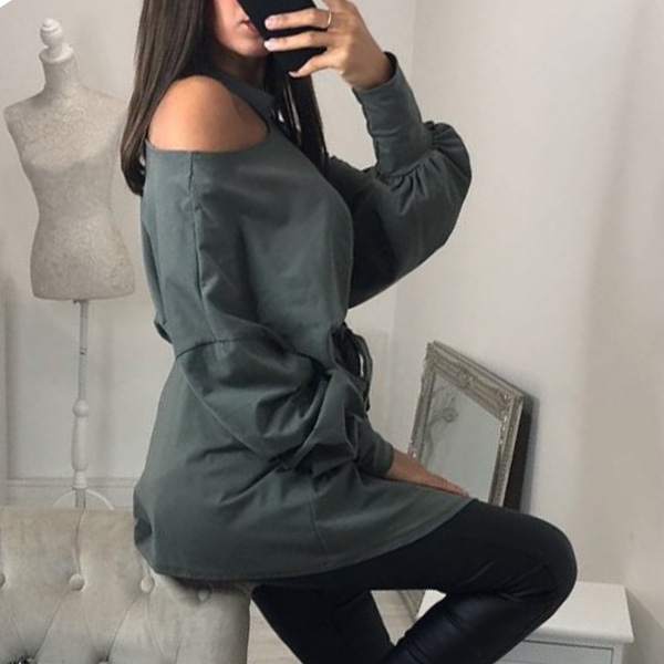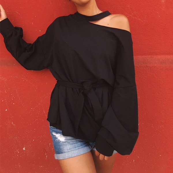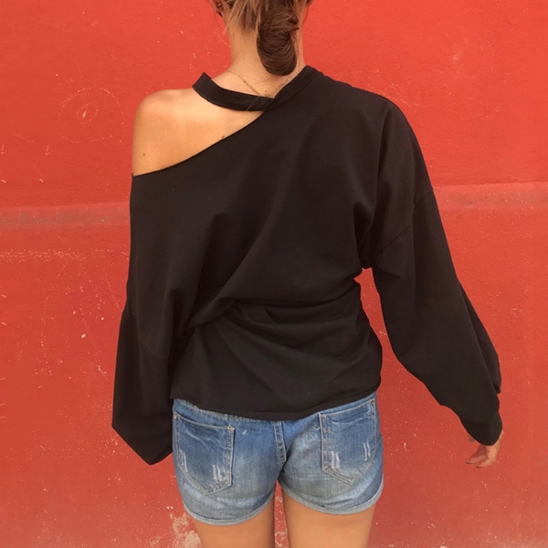 Thanks to its chic and sexy design style,you would be attracted by this sweatshirt. It comes with a solid color,