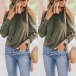 It boasts a solid color,finished with long sleeve and round neck design,the off-shoulder and twisted
