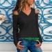 Coming with a solid color,simple yet generous,while the off-shoulder and v-neck design