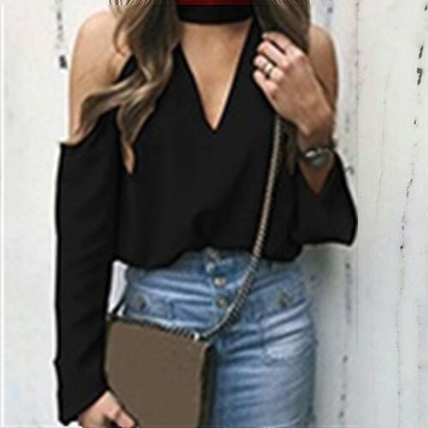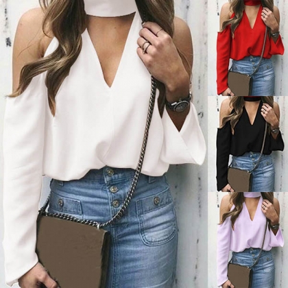 Exude your sexy and flirty appeal with this chiffon top. Comes with a solid color,the off-shoulder and v-neck