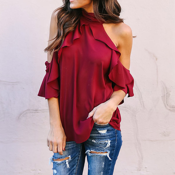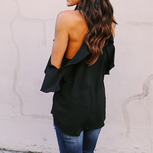 Hey,girls,you can slip into this top for a sexy and feminine style. Solid color style,the off-shoulder and
