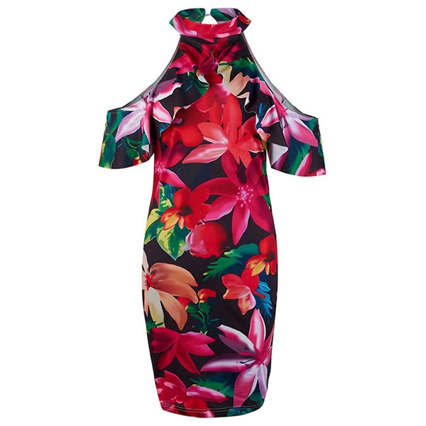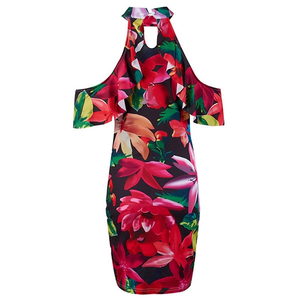 Sexy Off-shoulder Mock Neck Slim Fit Printed Dress