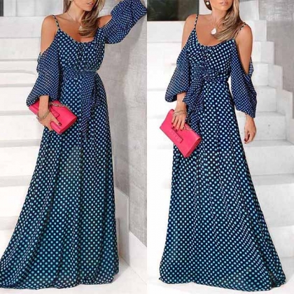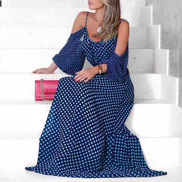 The dots printed design can lend you a dash of playful vibes,while the off-shoulder and puff sleeve