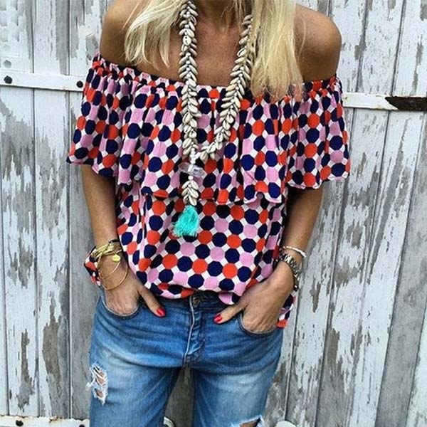 Add a dash of sexy and flirty vibes to your weekend look with this wonderful top. Its colorful printed