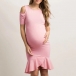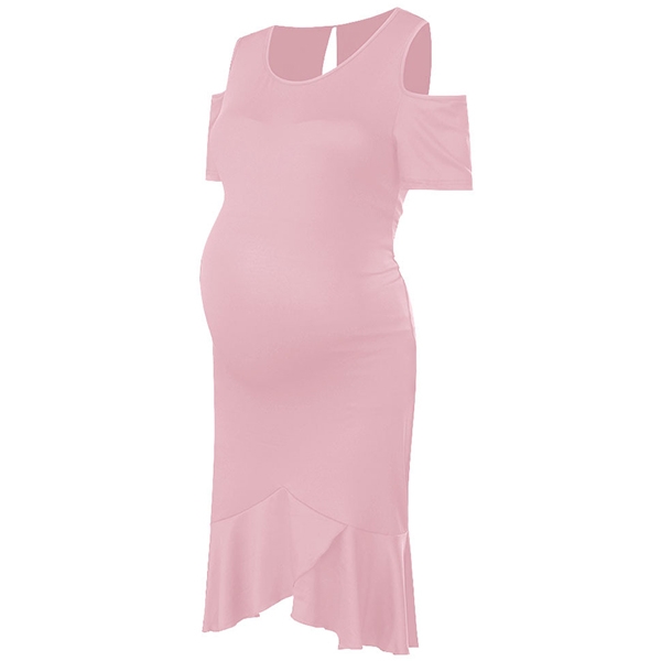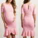 Sexy Off-shoulder Ruffle Hem Solid Color Maternity Dress
