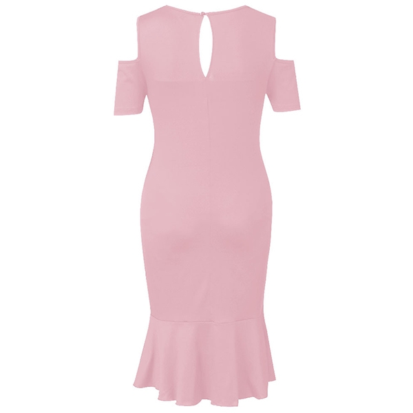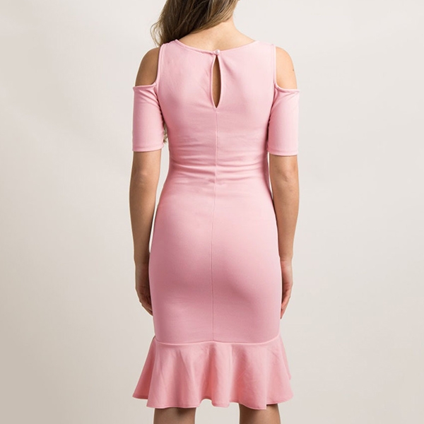 This dress comes with a sweet oink tone,with off-shoulder and ruffle hem design,which can easily