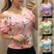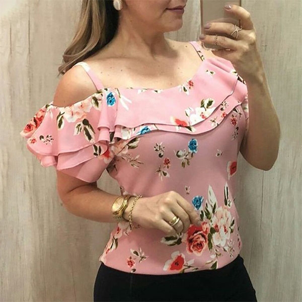 Create a sassy look with the flirty details of this top. Boasts vibrant floral print details,the off-shoulder
