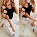 Only need one glance,you can be attracted by this t-shirt. The off-shoulder and pink 3D flowers spliced design